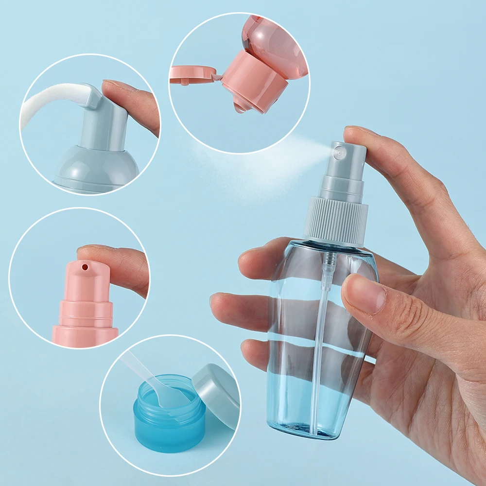 | Include | 1*Foam bottle, 1*lotion bottle, 1*spray bottle, 2*flip cap bottle, 1* cream jar, 1*funnel, 1*burette, 1*spatula, 1*self-adhesive |
