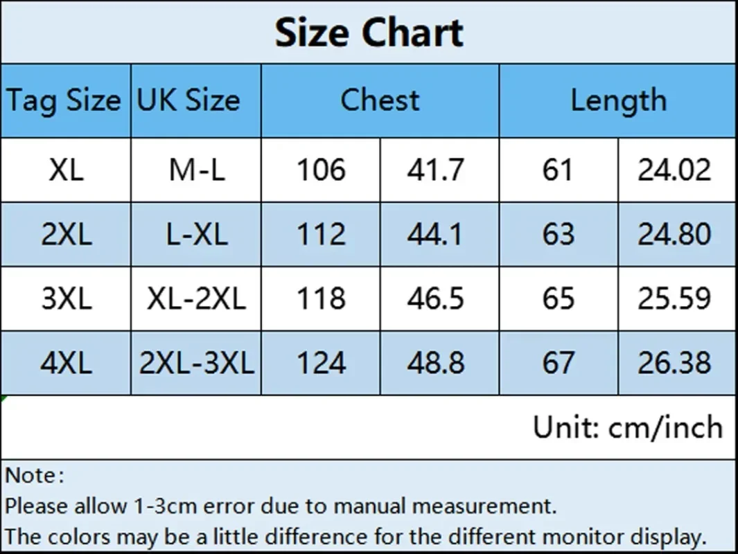 | Size | XL, XXL, XXXL, 4XL |